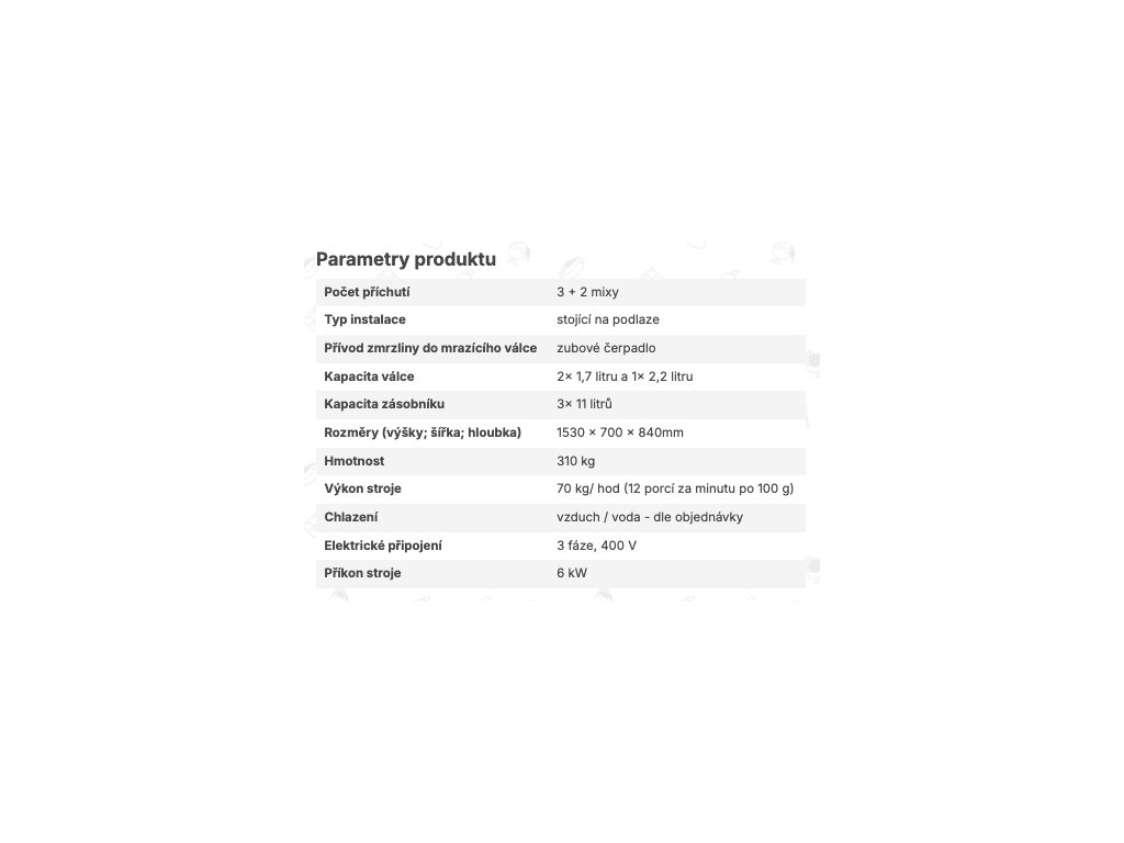| Výkon: | 70 kg/ hod (12 porcí za minutu po 100 g) |